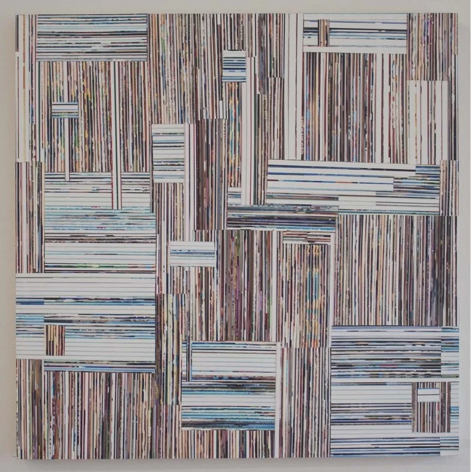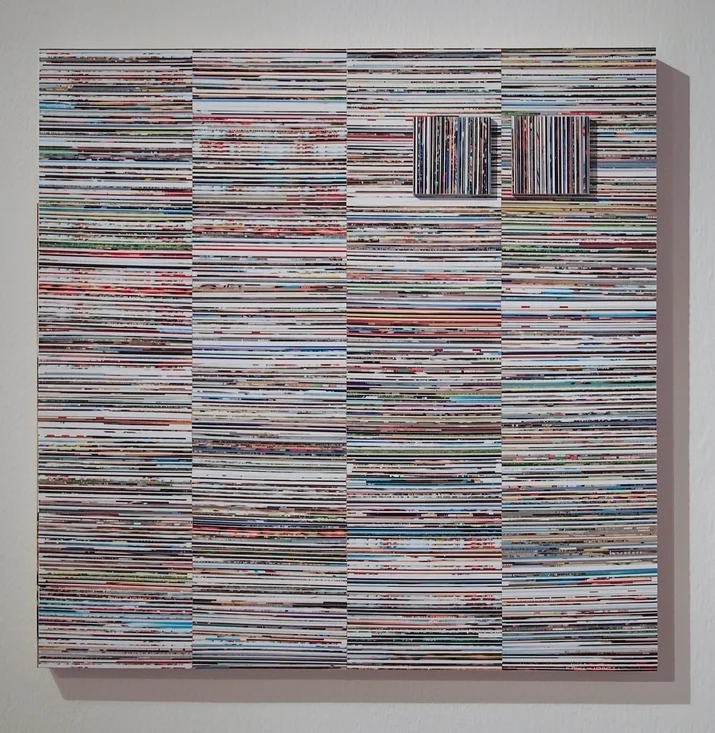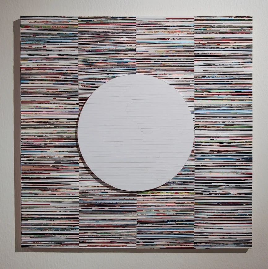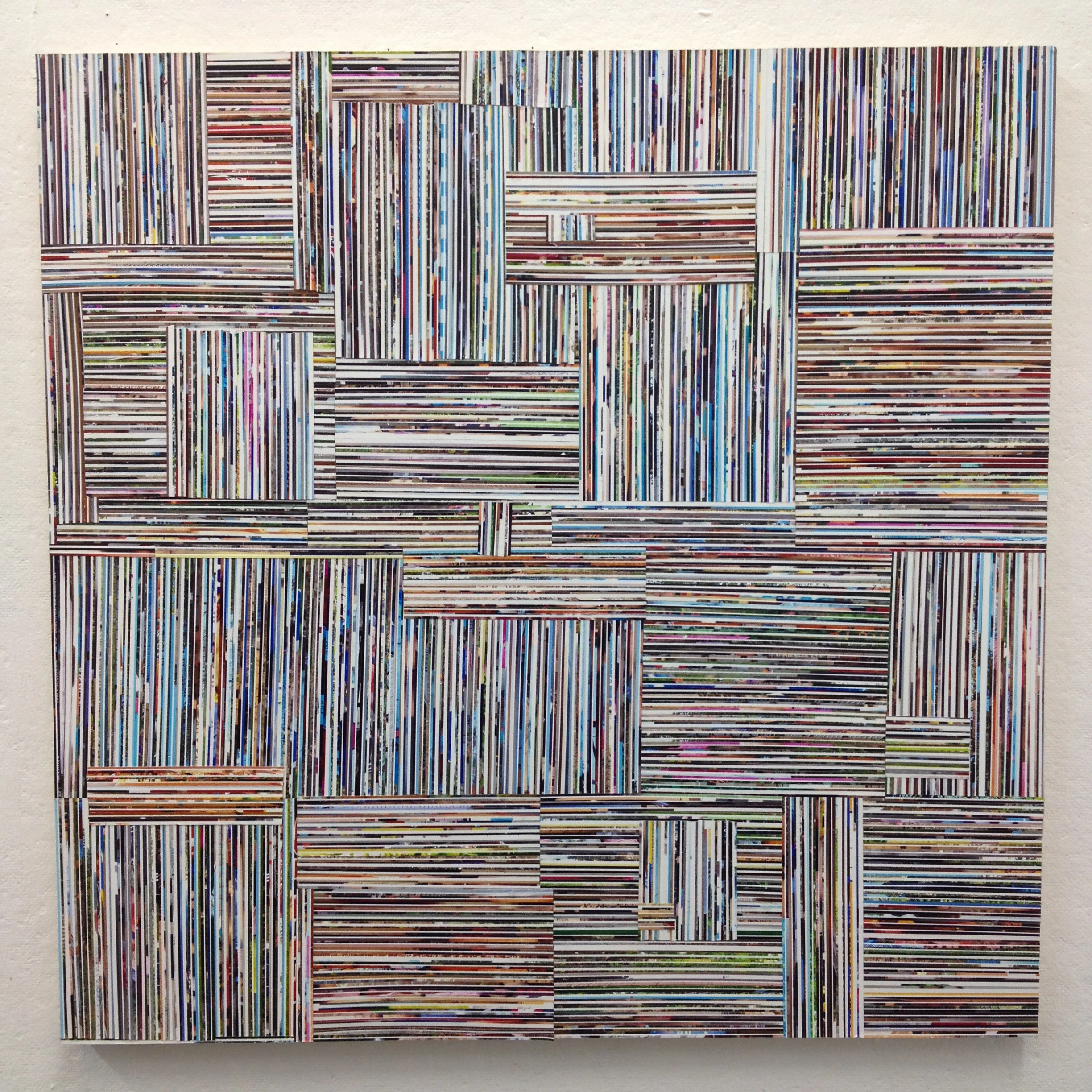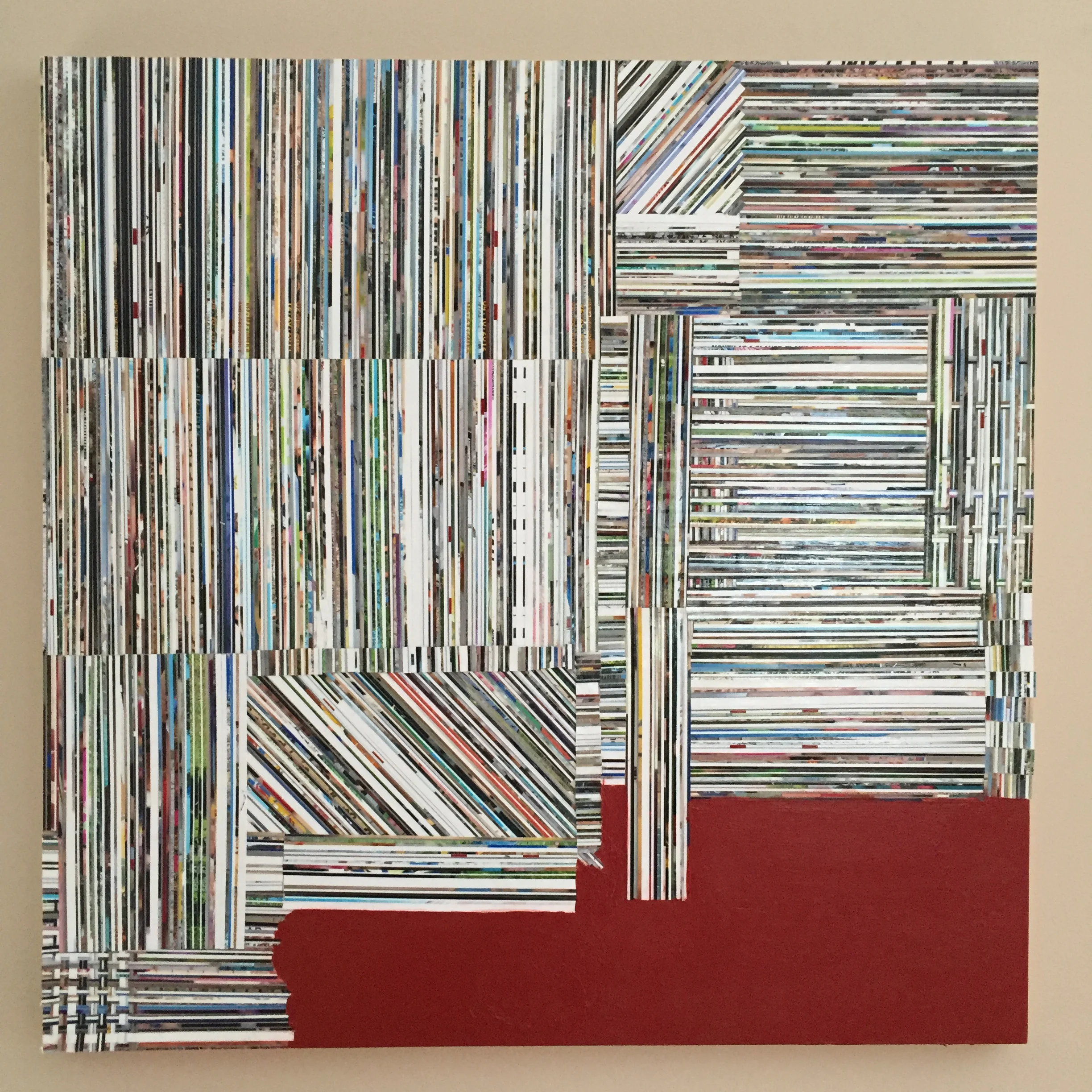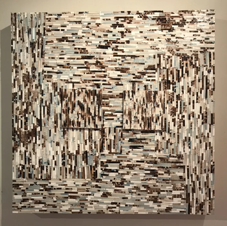 Gloss gel medium, acrylic, photo clippings on panel